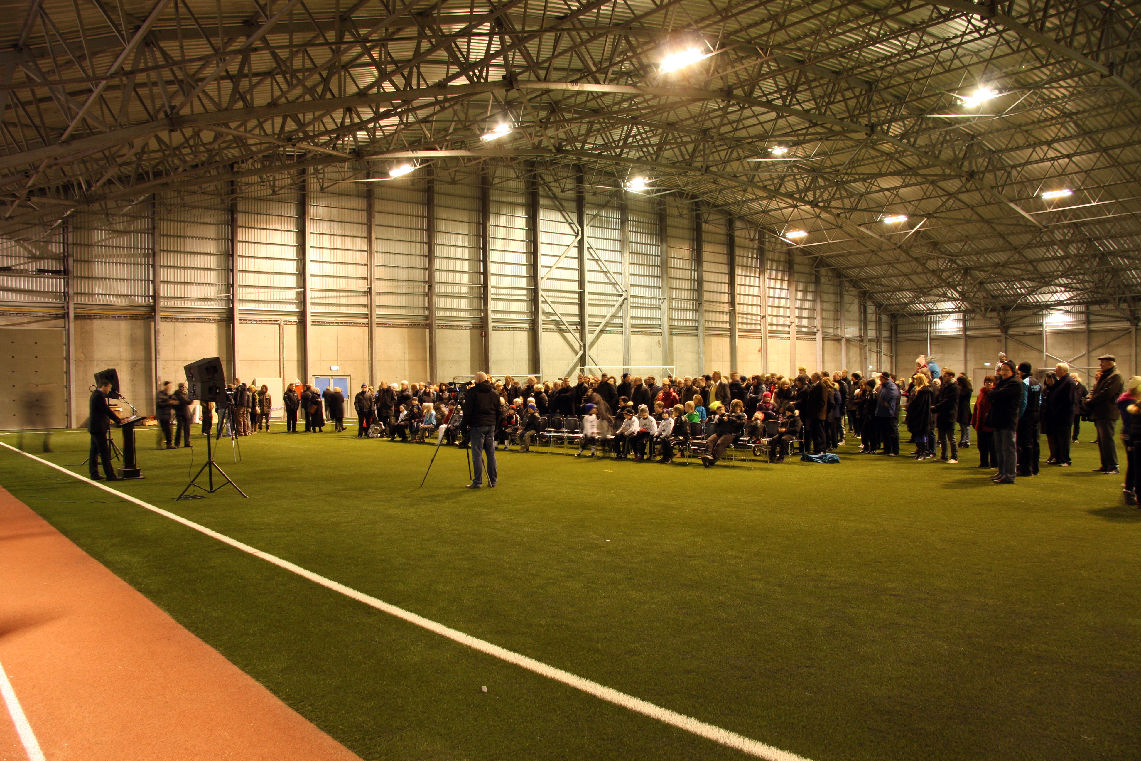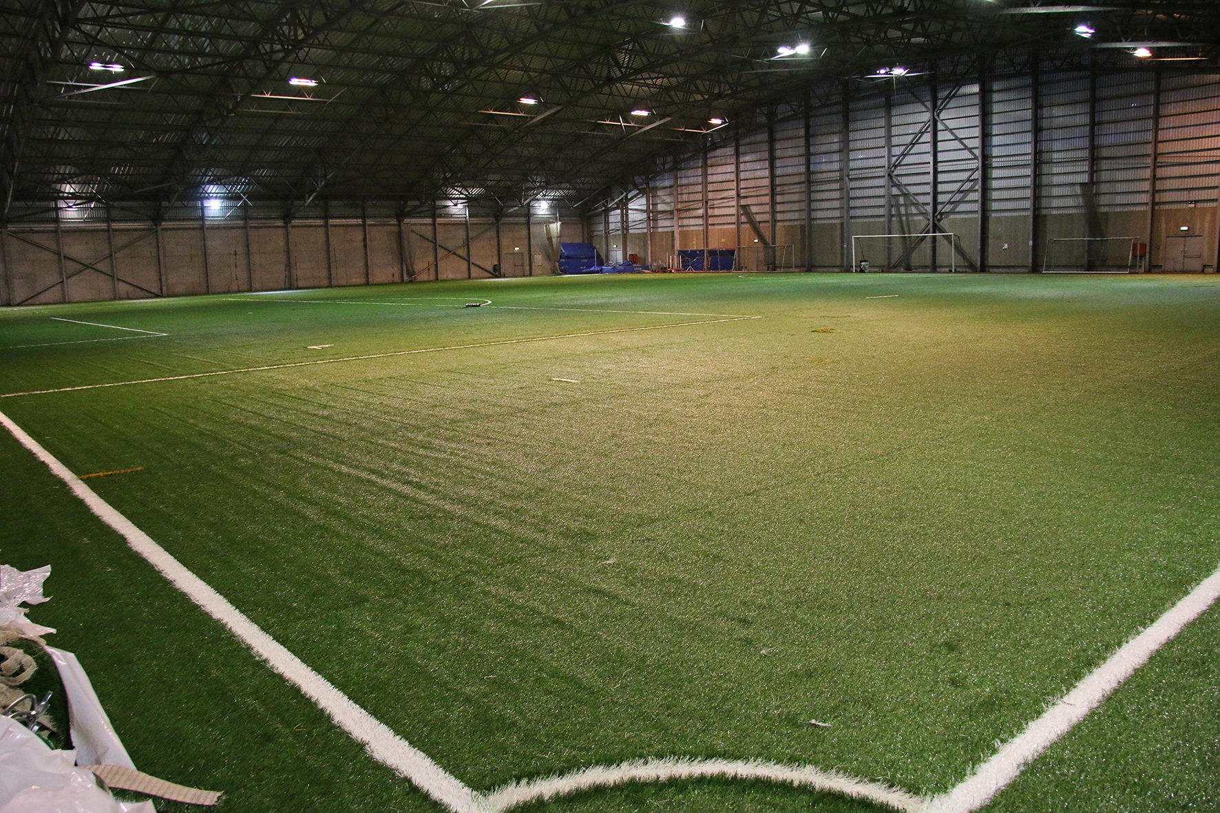 Vel gengur að leggja gervigrastið á Eimskipshöllina, búið er að setja línur og unnið er að lokafrágangi. Þannig að ef allt gengur eftir að þá verður hægt að hefja æfingar í fyrstu viku nóvembermánaðar.
