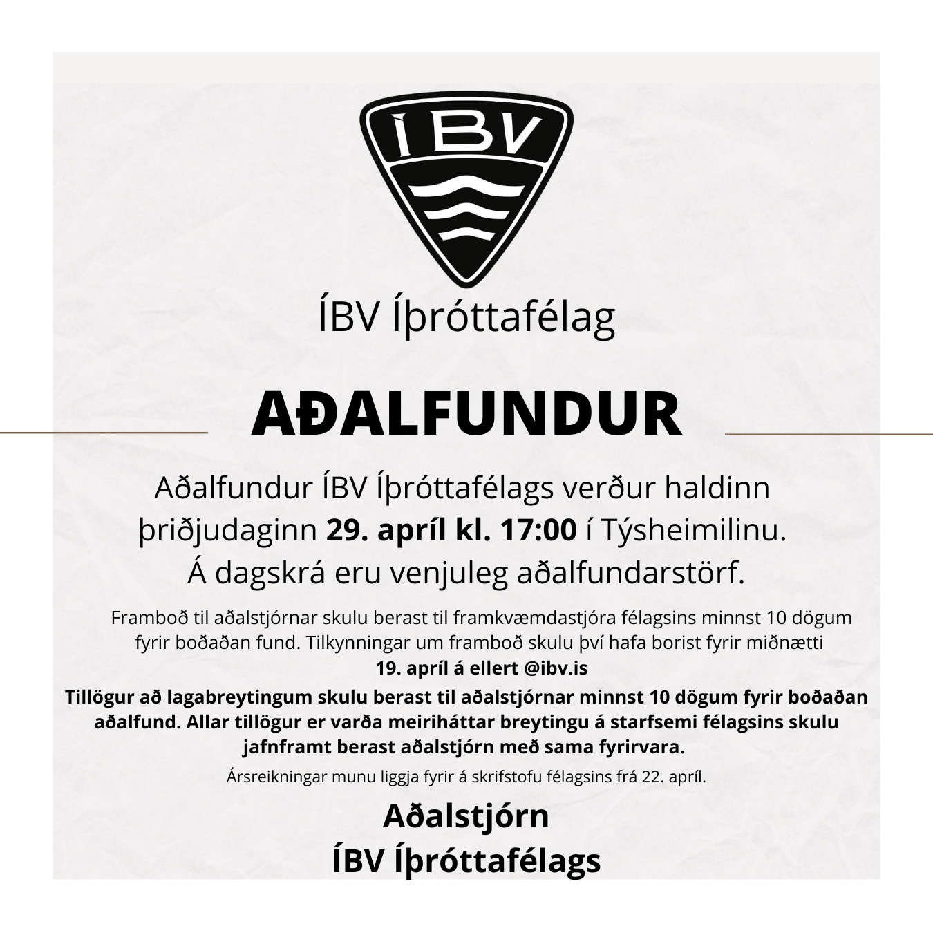 Aðalfundur ÍBV-íþróttafélags fer fram 29. apríl kl 17:00.